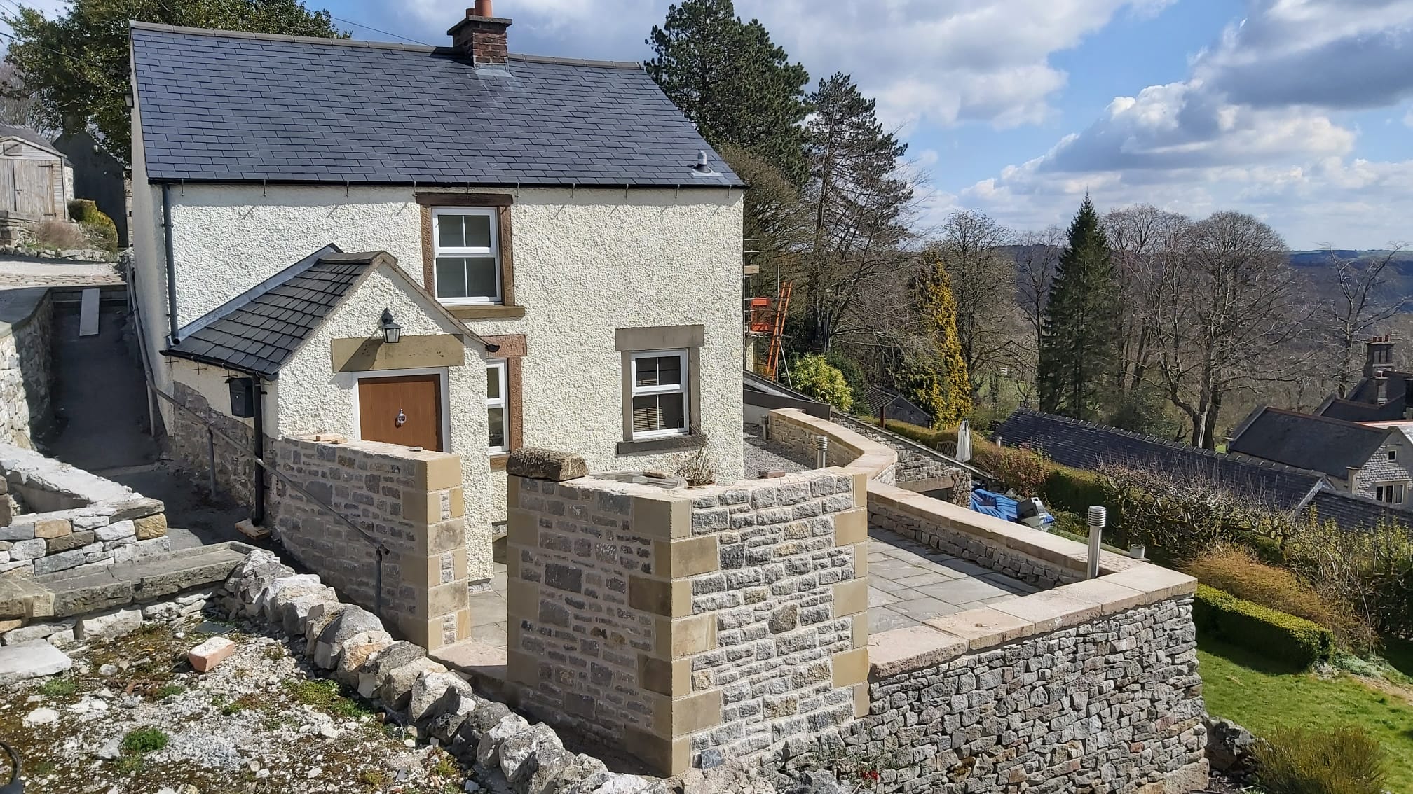 This stone wall was built with bespoke reclaimed quoins with a distinct mustard colouring.