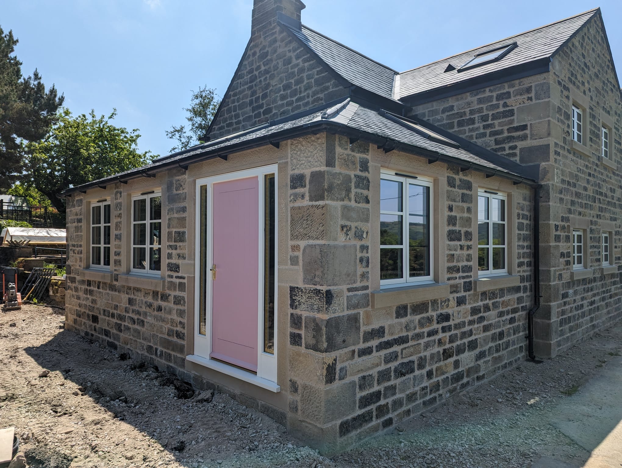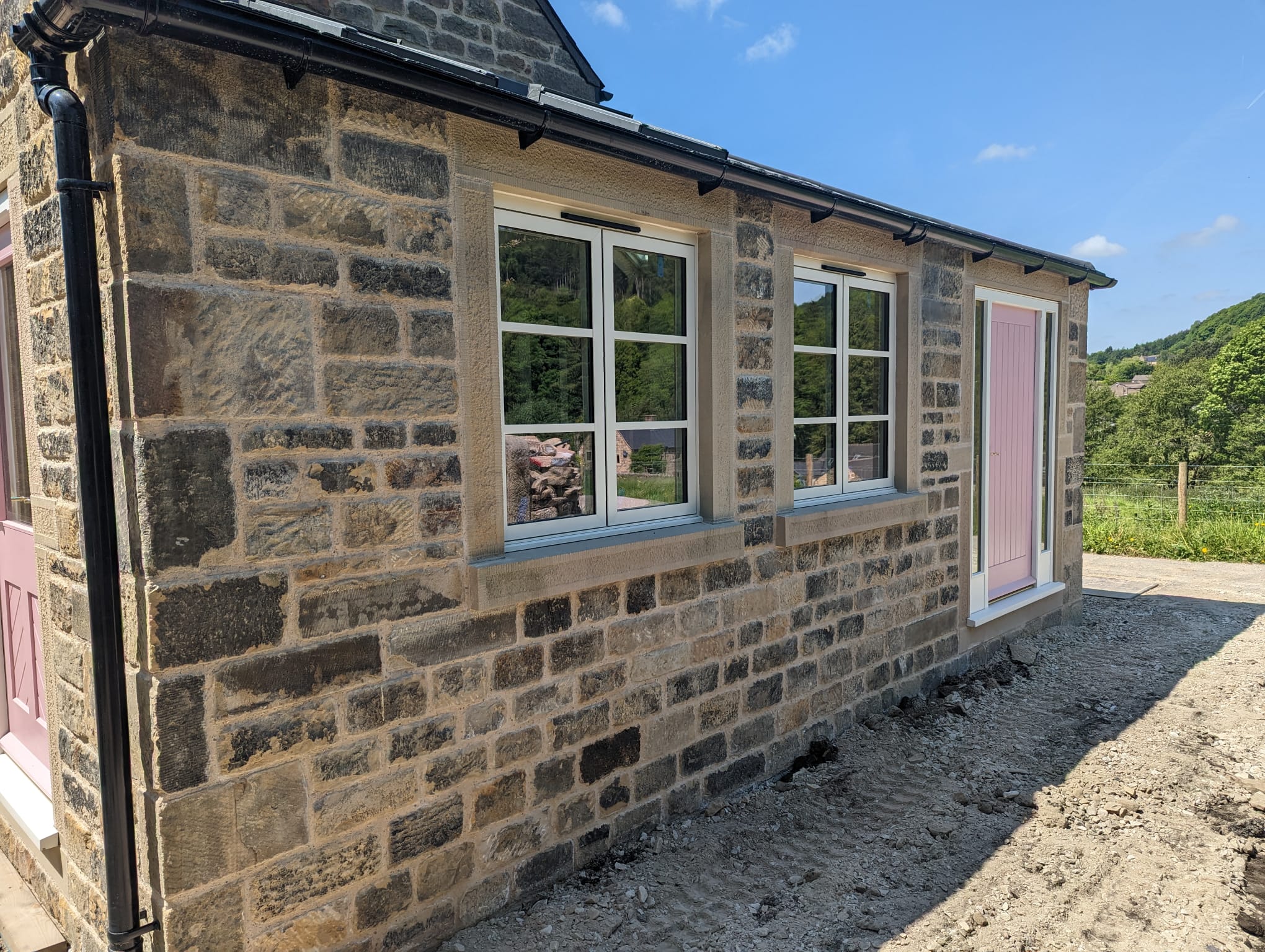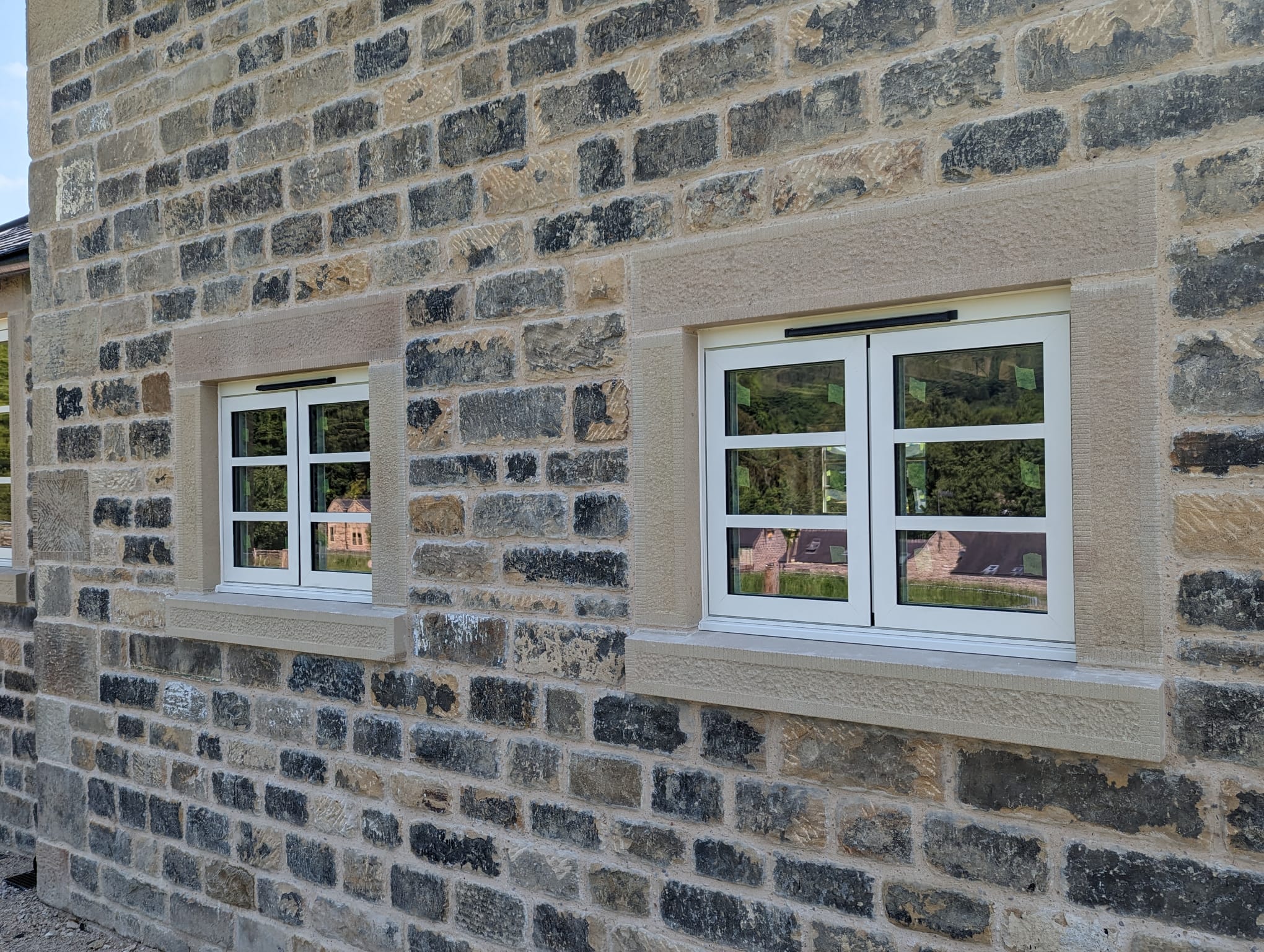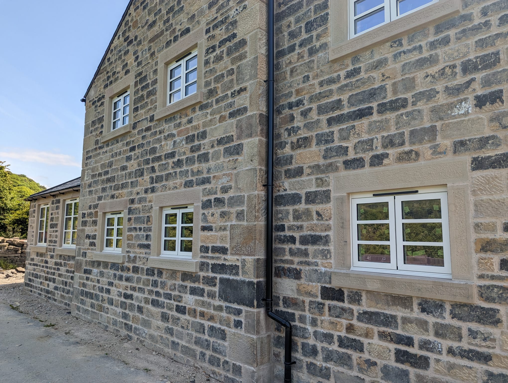 Every detail was crafted with care — all quoins were handmade on-site using reclaimed materials and hand-tooled to perfection. Our team also cut, prepared, and dressed every piece of walling stone on-site, ensuring an exceptional finish and complete harmony with the original building.